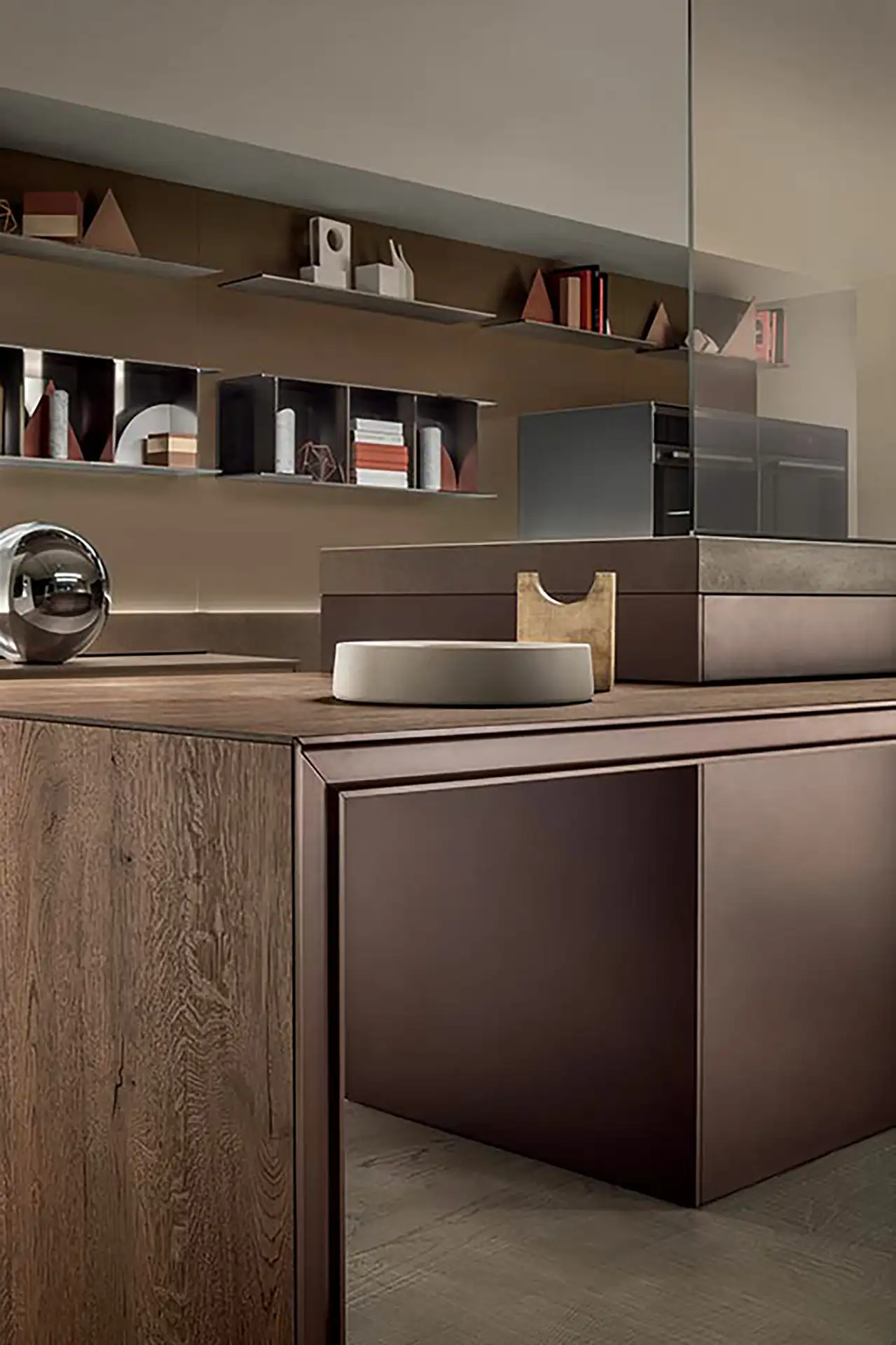 Icon è realizzata con soluzioni di grande valore tecnico e di forte impatto visivo, elementi di finitura in grado di modificare la sensazione di comfort e conferire alla cucina una chiave di lettura non solo estetica ma anche tattile.