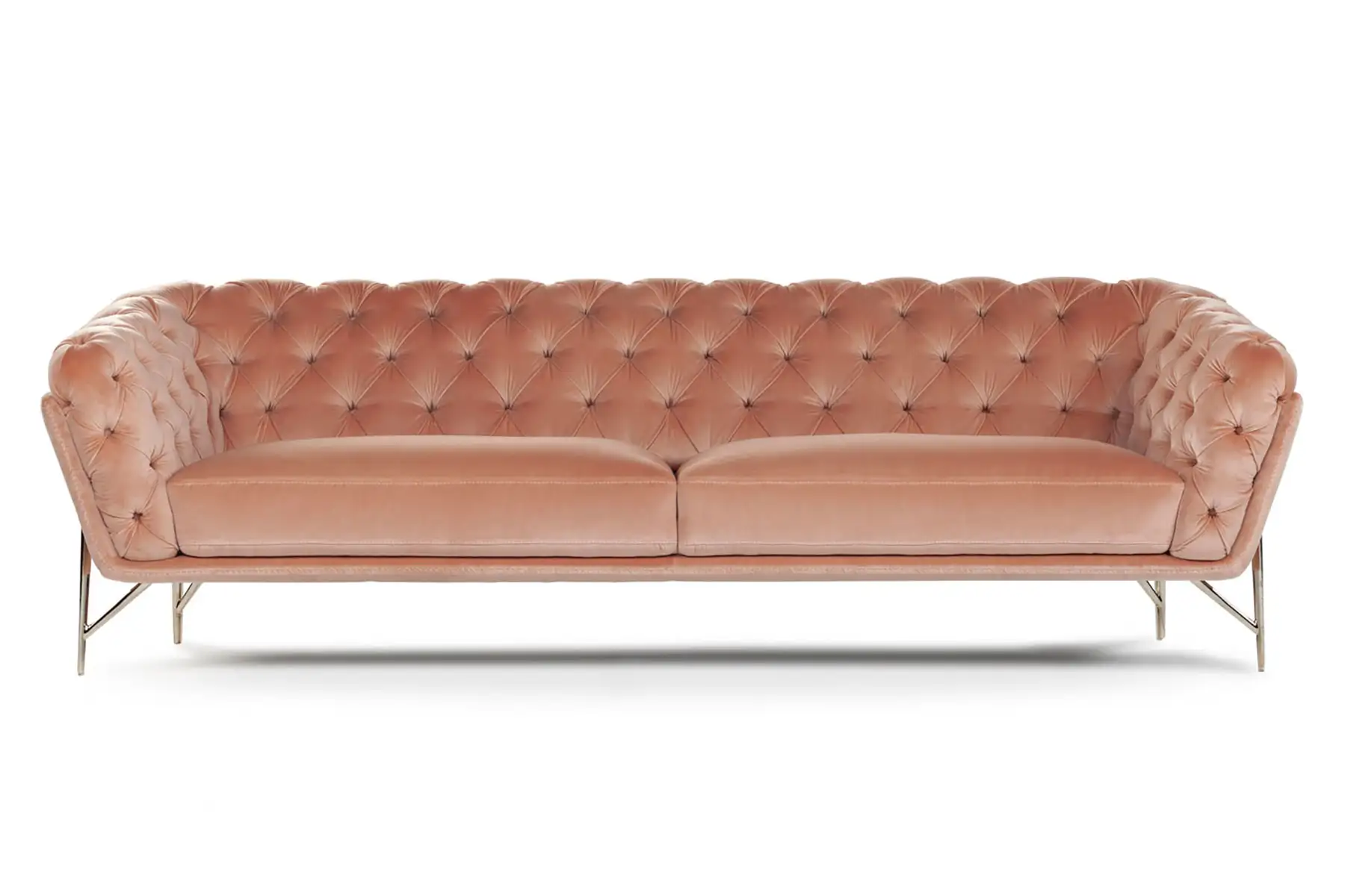 Art Nouveau è la versione chic dei due modelli precedenti, Mater Familias e Venere. Pur mantenendo la struttura sottile e avvolgente, la lavorazione capitonné lo posiziona immediatamente nel segmento alto di gamma. Un elegante profilo esterno sottolinea la forma inclinata della scocca impreziosita dal singolare piede a forcella presentato nella finitura oro.