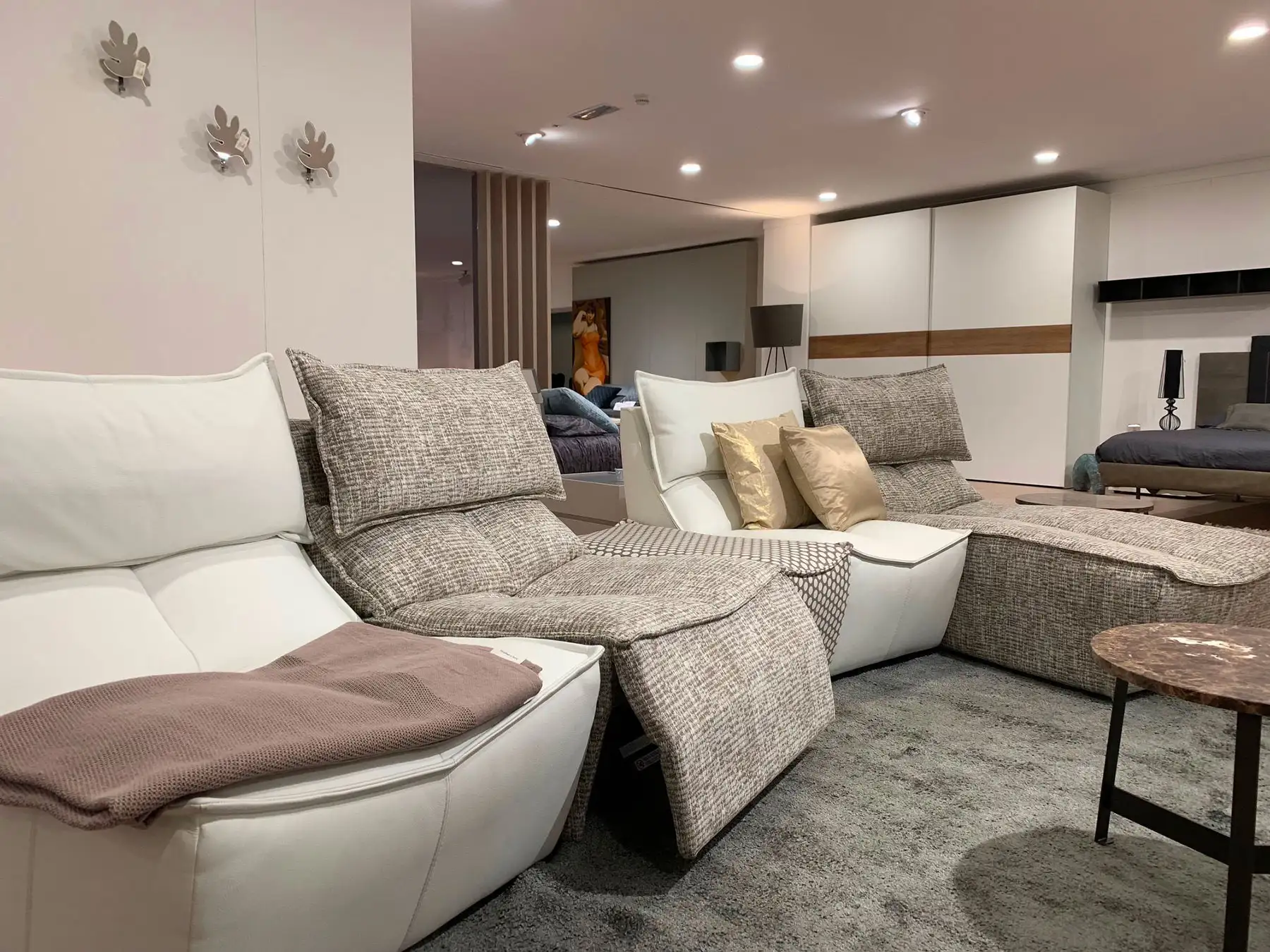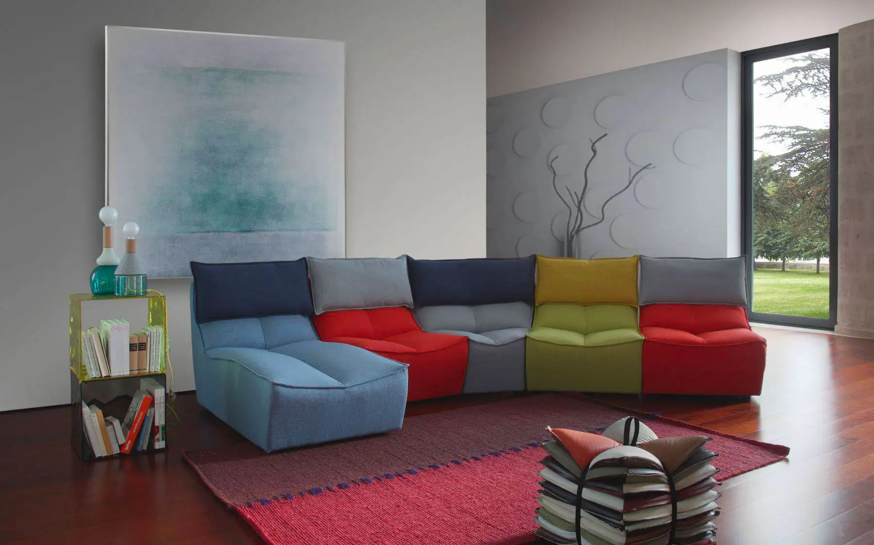 Grazie a questo modello, il divano si trasforma e cambia configurazione a seconda delle esigenze e dei gusti di ognuno. Sedute, chaise longue, pouf e versioni recliner sono comodamente intercambiabili e possono essere composte e ricomposte ed eventualmente completarsi con ampi braccioli terminali.