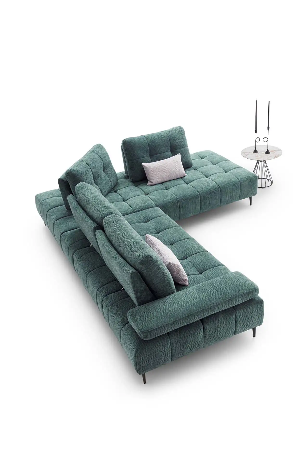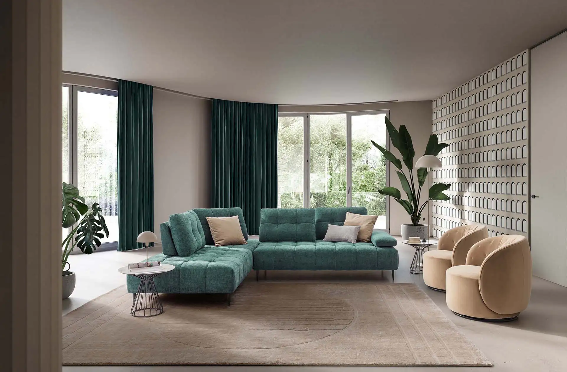 Divano modulare dal design moderno e arrotondato con schienale traslabile e braccioli regolabili
