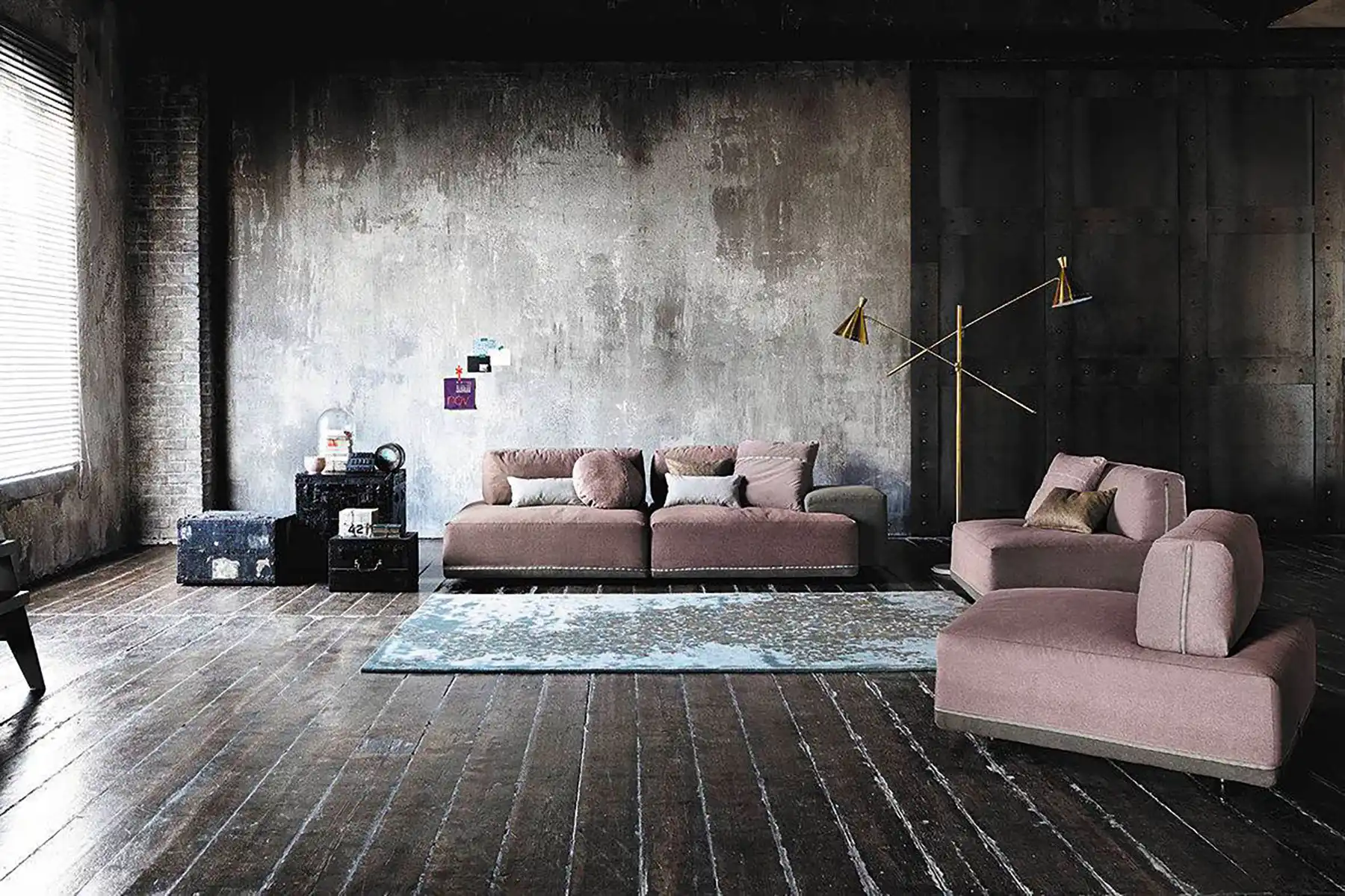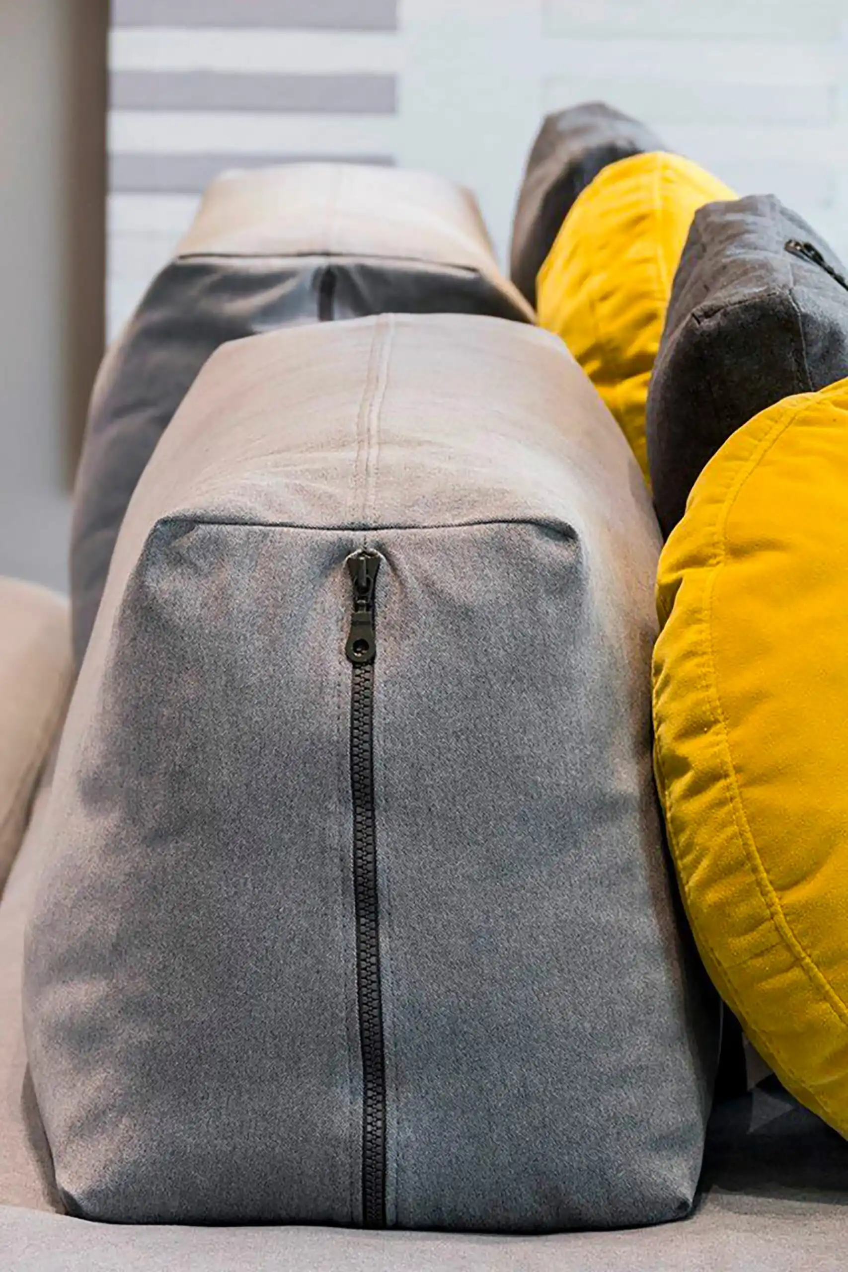 Divano informale, destrutturato e modulare, dalla massima libertà compositiva con schienali posizionabili ovunque, corredati da un sistema di cuscini liberi per creare sedute originali.
