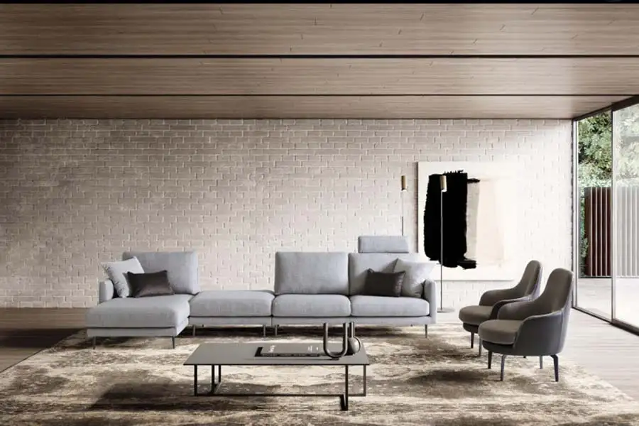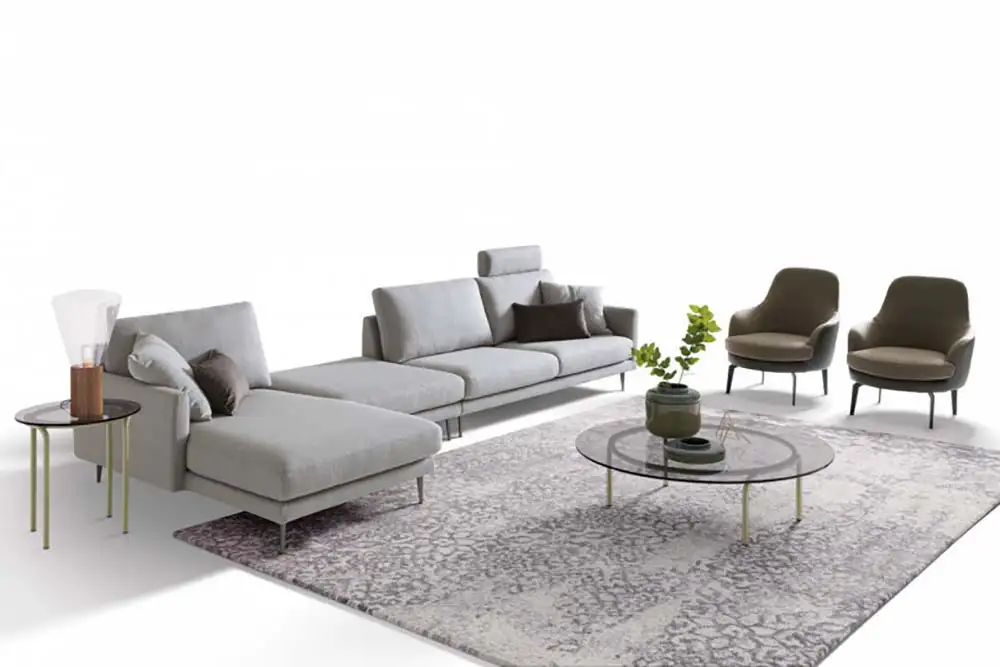 Tidy interpreta con garbo e leggiadria questa missione dell’arredo domestico, vivacizzando il consueto orizzonte del divano con estensioni orizzontali e verticali, rispettivamente rappresentate dal poggiatesta e dalla pratica chaise longue laterale.