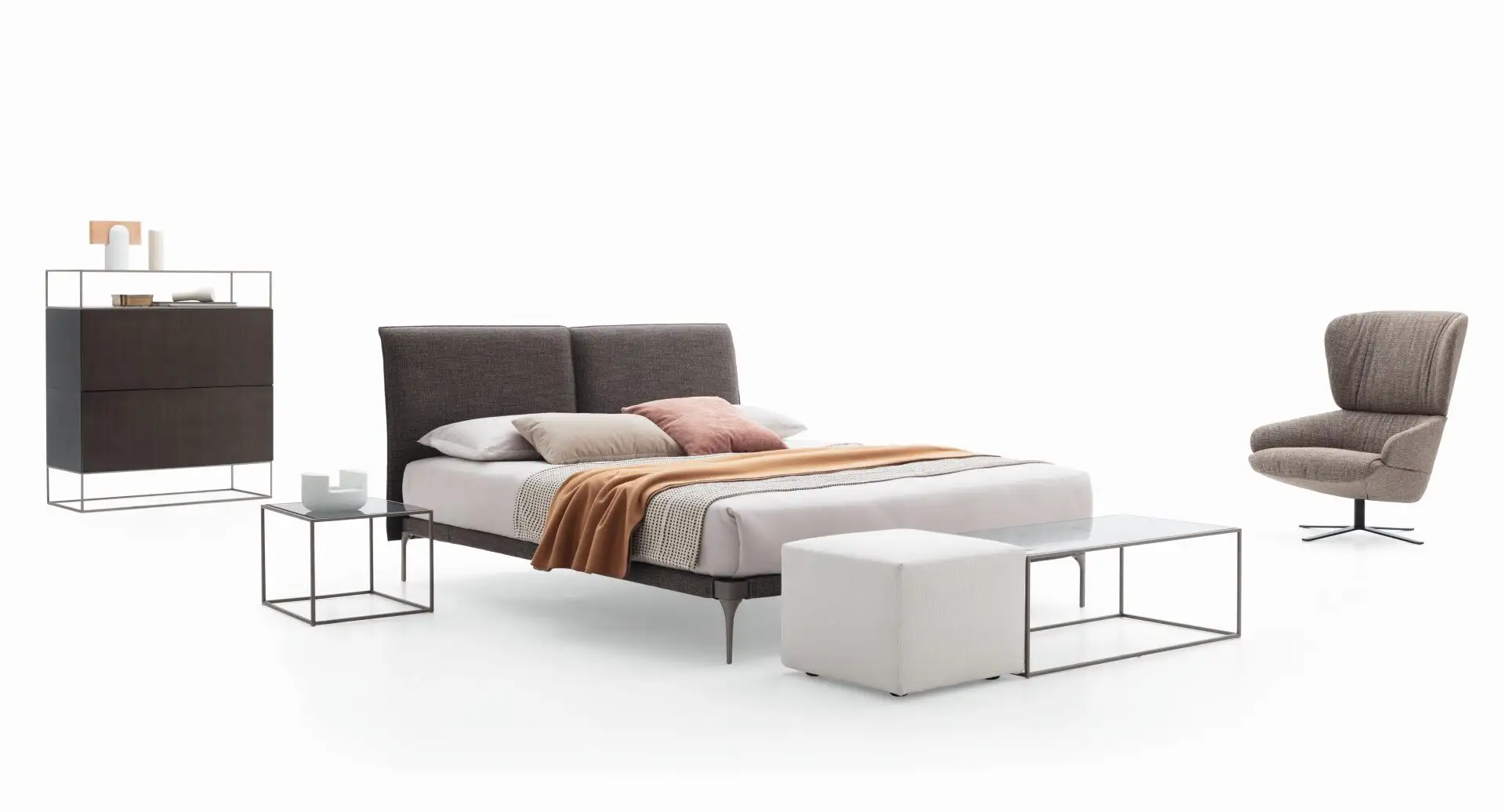 Ispirato all’omonimo divano, il letto Ada ne rispetta il concetto aereo informale ed allo stesso tempo sofisticato.