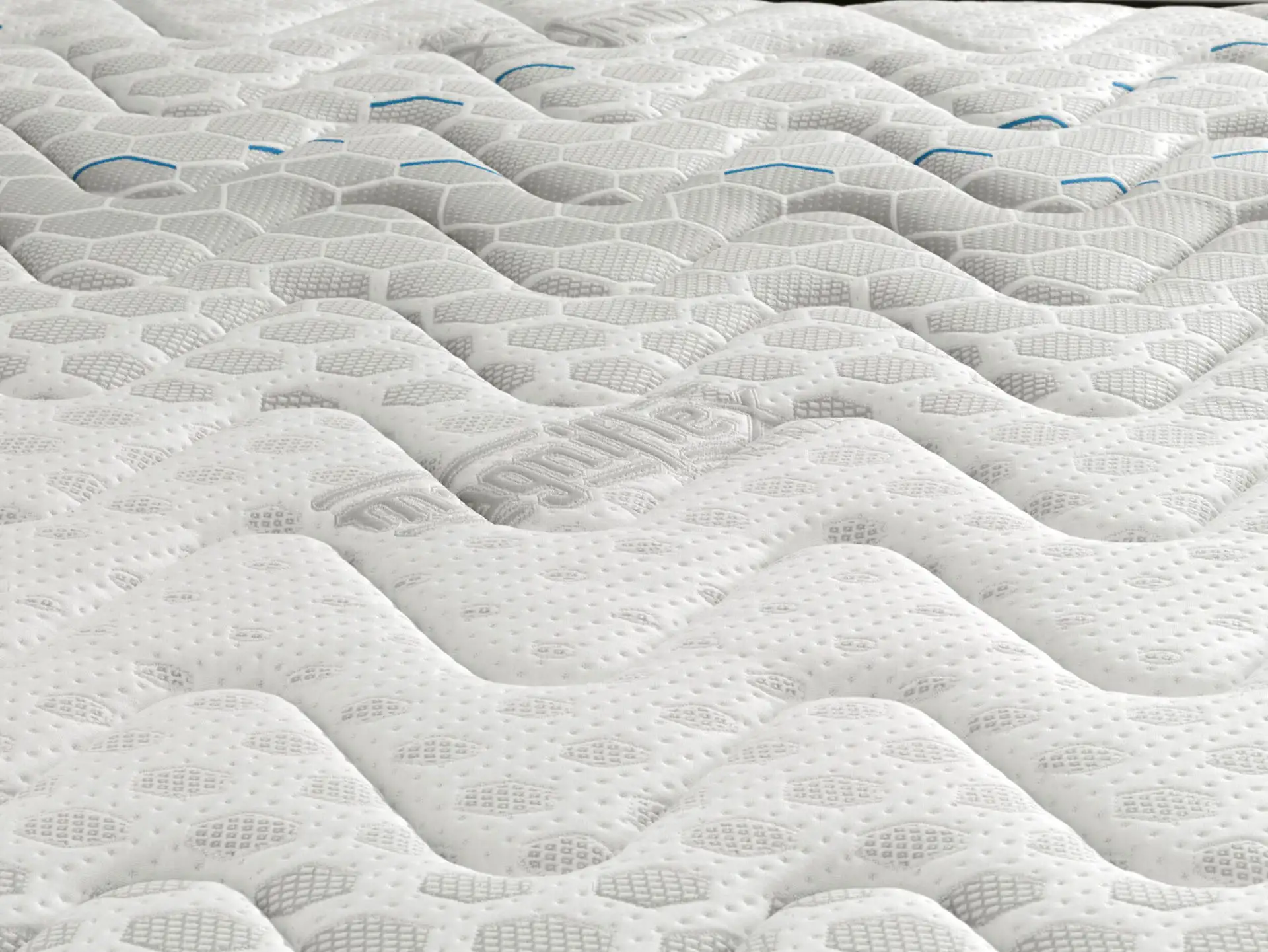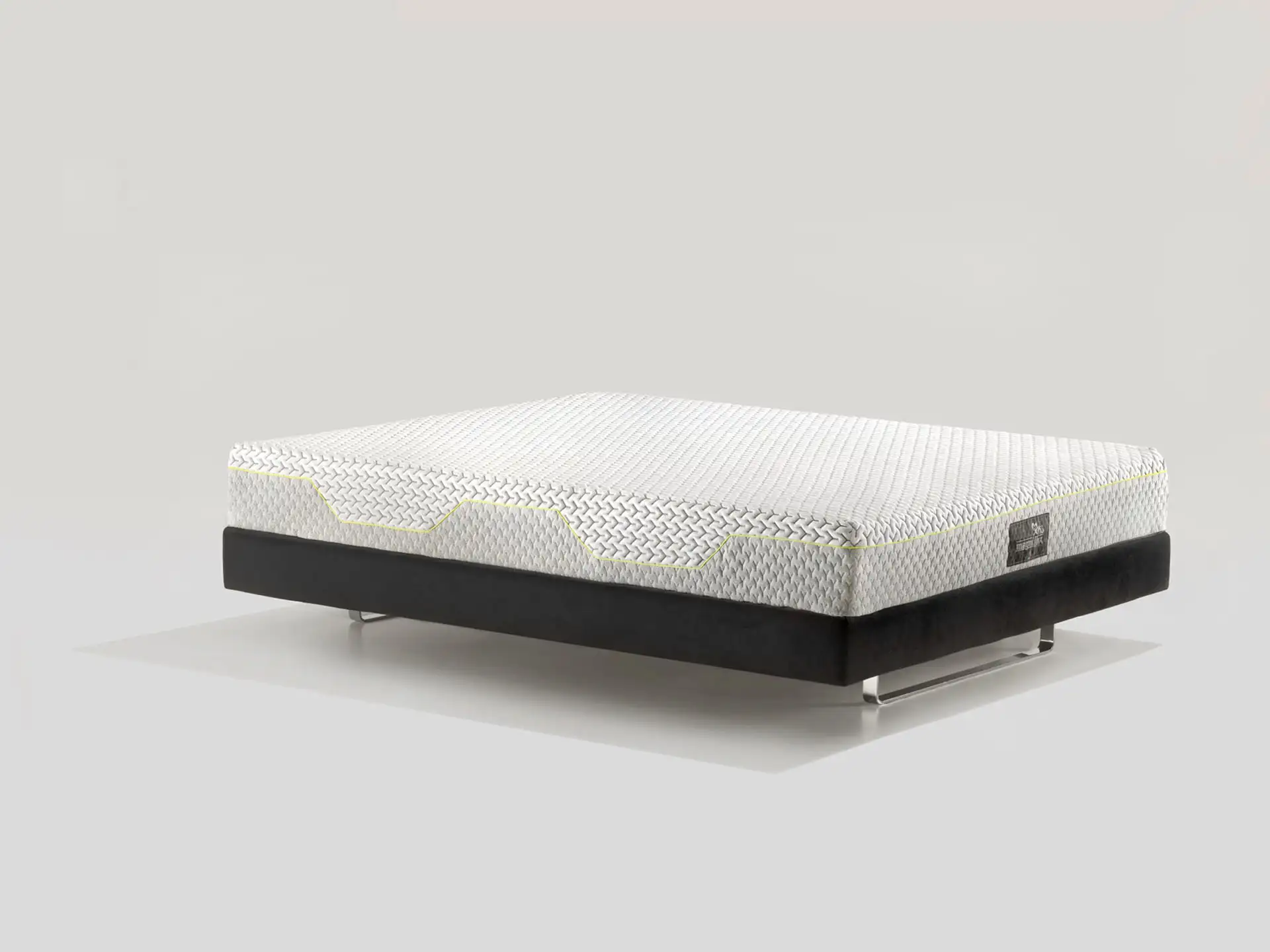 La lavorazione a scacchi e quella stretching assicurano sostegno differenziato a zone e stretching alla spina dorsale, oltre che ad areazione nel cuore della lastra. Le tre lastre in Elioform ed Eliosoft garantiscono il sostegno ideale. L’imbottitura è in Memoform anatomico. Il rivestimento, in morbida viscosa e Outlast® termoregolatore, assorbe il calore in eccesso e lo rilascia quando serve. Comfort Medium-Firm.