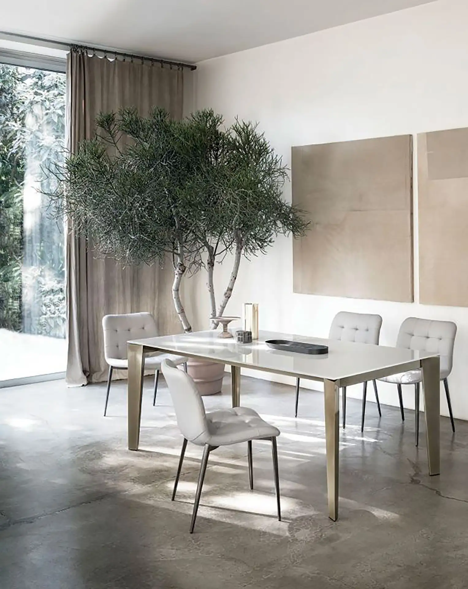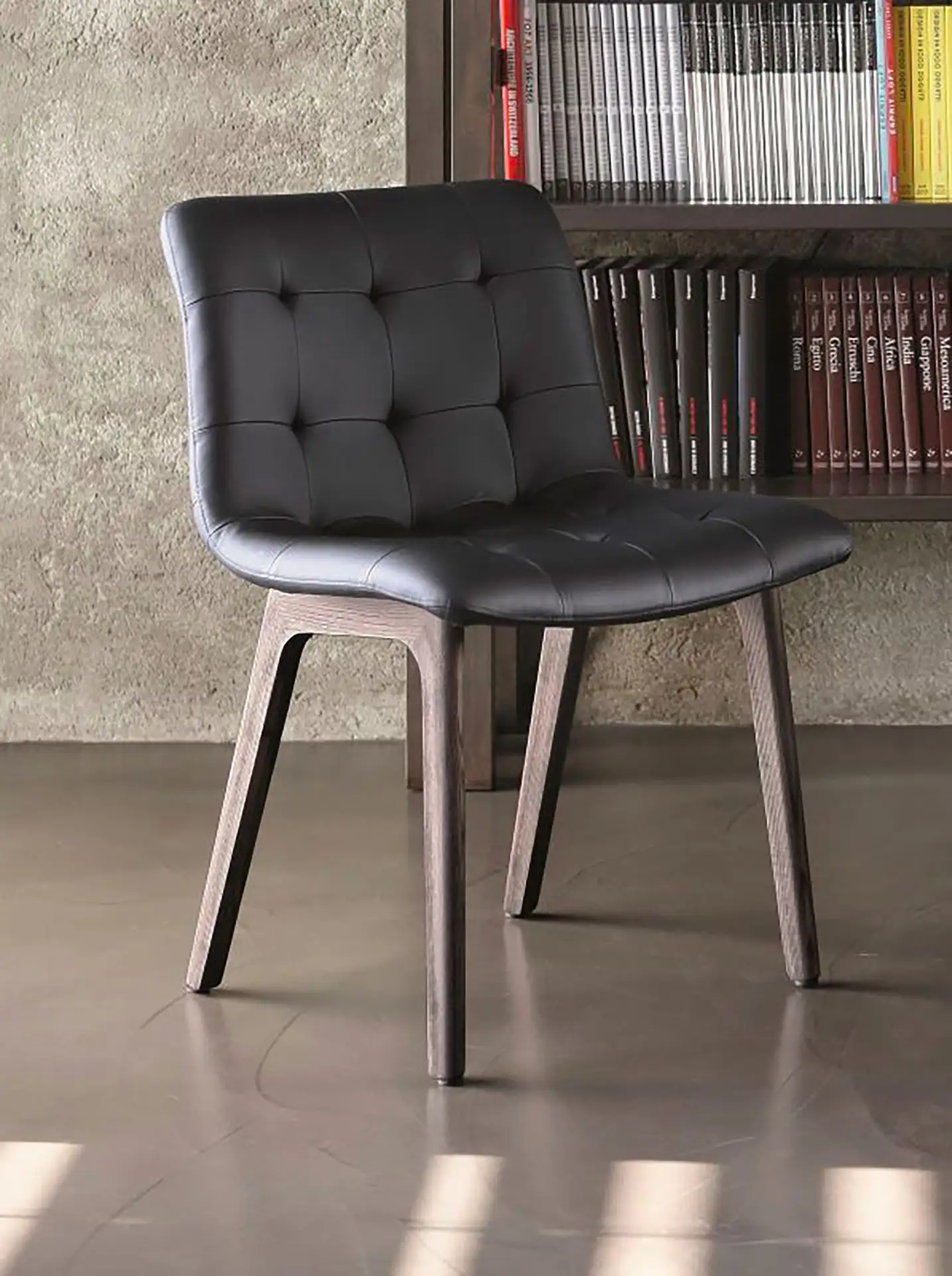 La trapunta è segno di comodità e bellezza. Si possono creare molti abbinamenti, dalla gamba in acciaio alla gamba in legno, seduta in pelle o tessuto. Si può passare dal gusto classico ad un gusto contemporaneo. Disponibile anche nella versione con braccioli, e gambe a slitta. Per dare una continuità al proprio living, viene proposta anche la versione sgabello.